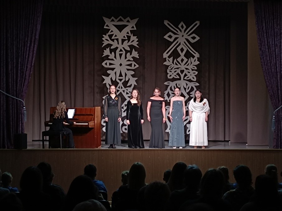 Scena tą vakarą virto erdve, kurioje susiliejo jaunų balsų ryžtas, talentas ir nuoširdžiausia dedikacija. Vytauto Didžiojo universiteto Muzikos akademijos lektorių Gabrielės Žukauskienės ir Gabrielės Bukinės dainavimo klasių studentės – G. Liubauskaitė, J. Cironkaitė, D. Bačiulytė, G. Šinkūnaitė ir Qianrui Li – vieną po kito dovanojo kūrinius, alsuojančius vidine jėga ir jautria interpretacija.