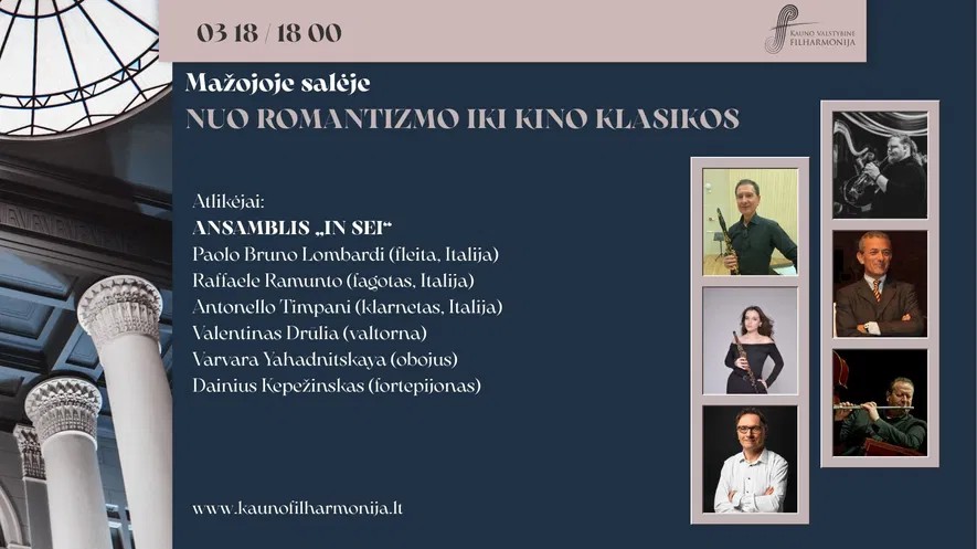 Kviečiame į koncertą „NUO ROMANTIZMO IKI KINO KLASIKOS” kovo 18 d. Kauno valstybinės filharmonijos mažojoje salėje