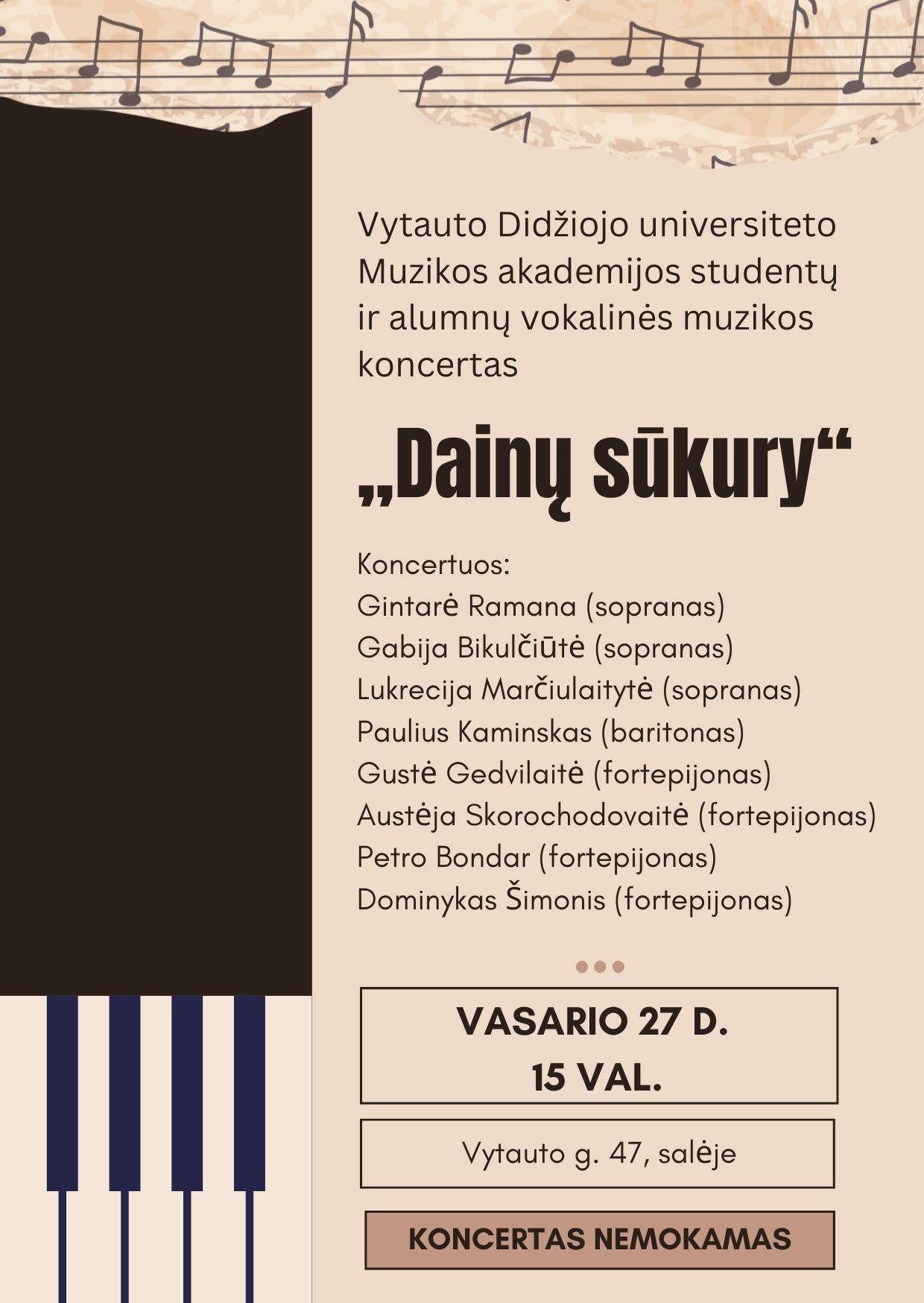 Kovo 20 d. VDU Muzikos akademija kviečia stoti į Atlikimo meno studijų programą.