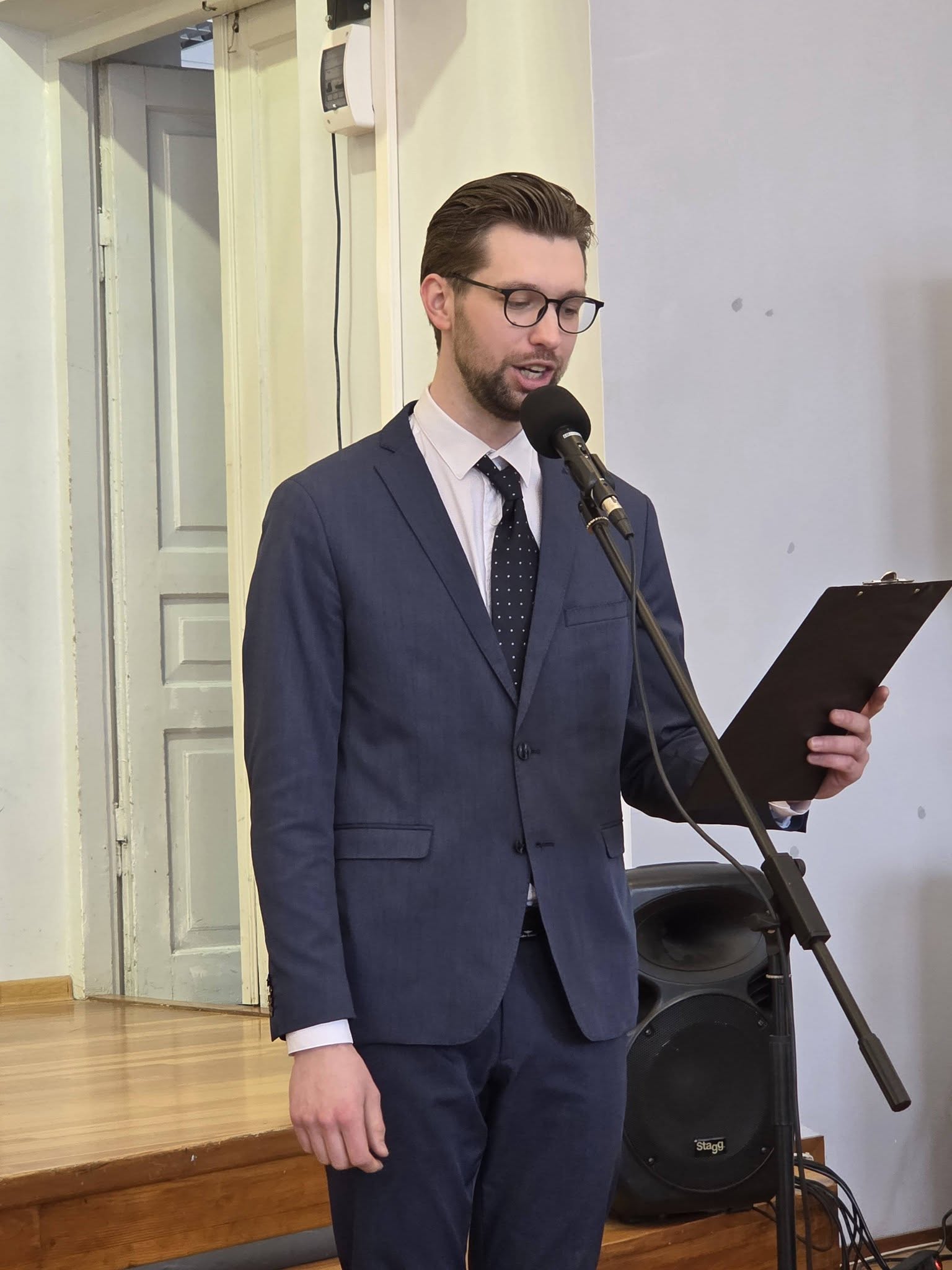 Vakaro programą profesionaliai ir jaukiai vedė VDU Muzikos akademijos studentas, mūsų Universiteto bičiulis Dovydas Stralkus, kuriam ši diena – ypatinga.
