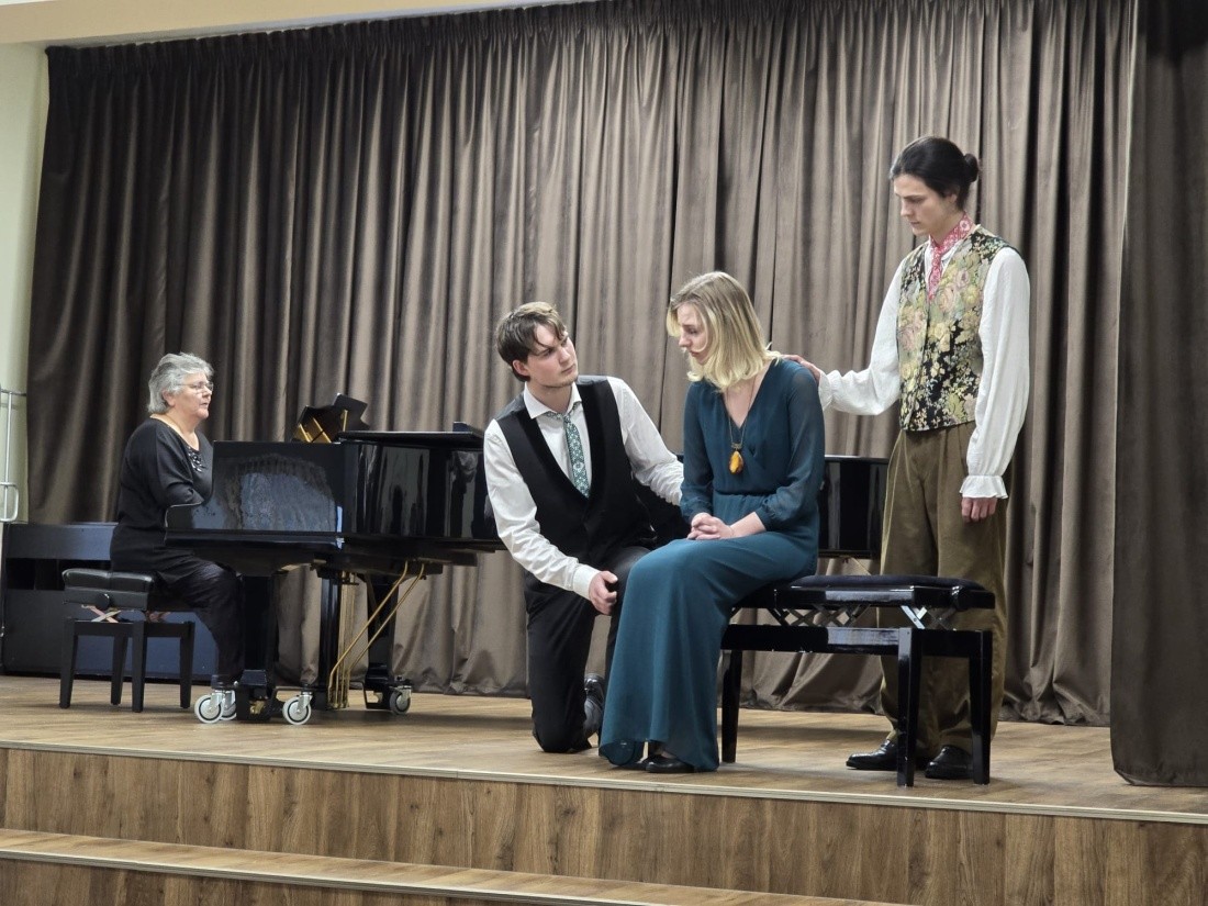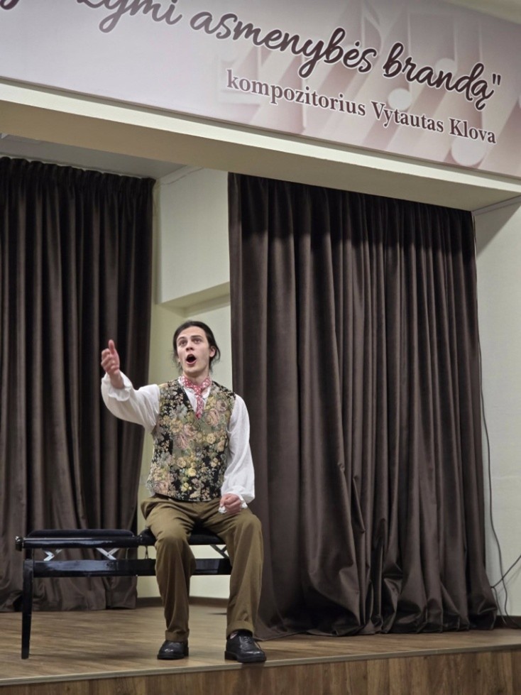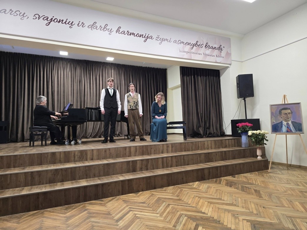 Svečiai padovanojo mokyklos bendruomenei teatralizuotą koncertą „Vytauto Klovos kūrinių pastišas“, skirtą Vytauto Klovos 100-osioms gimimo metinėms.