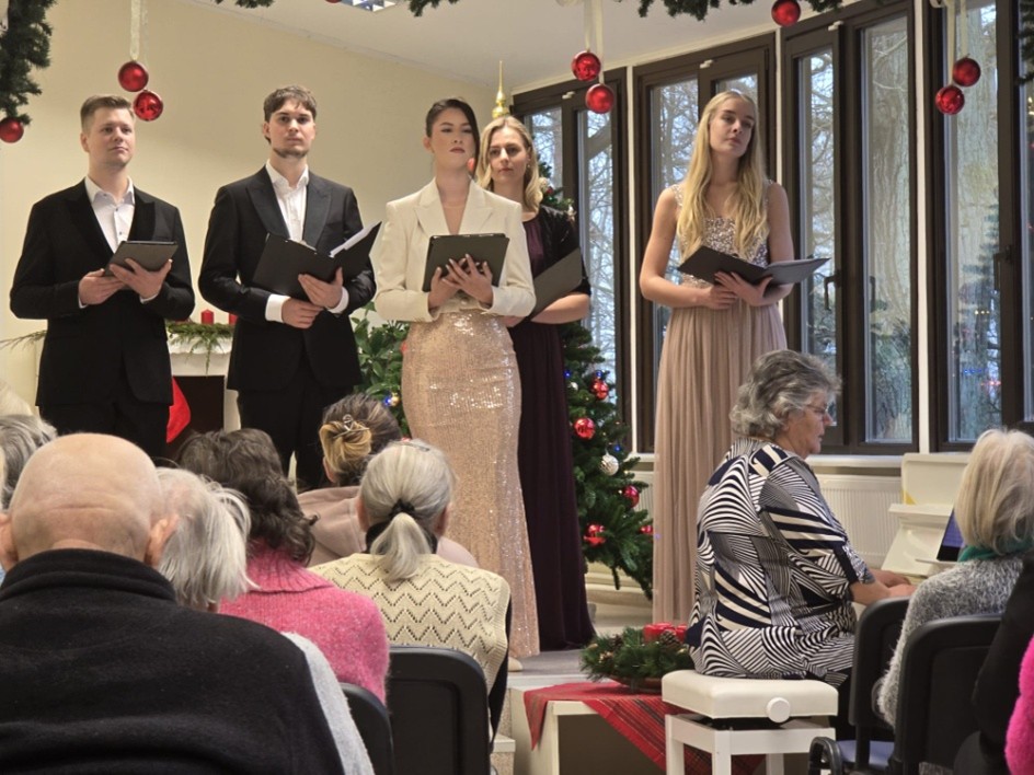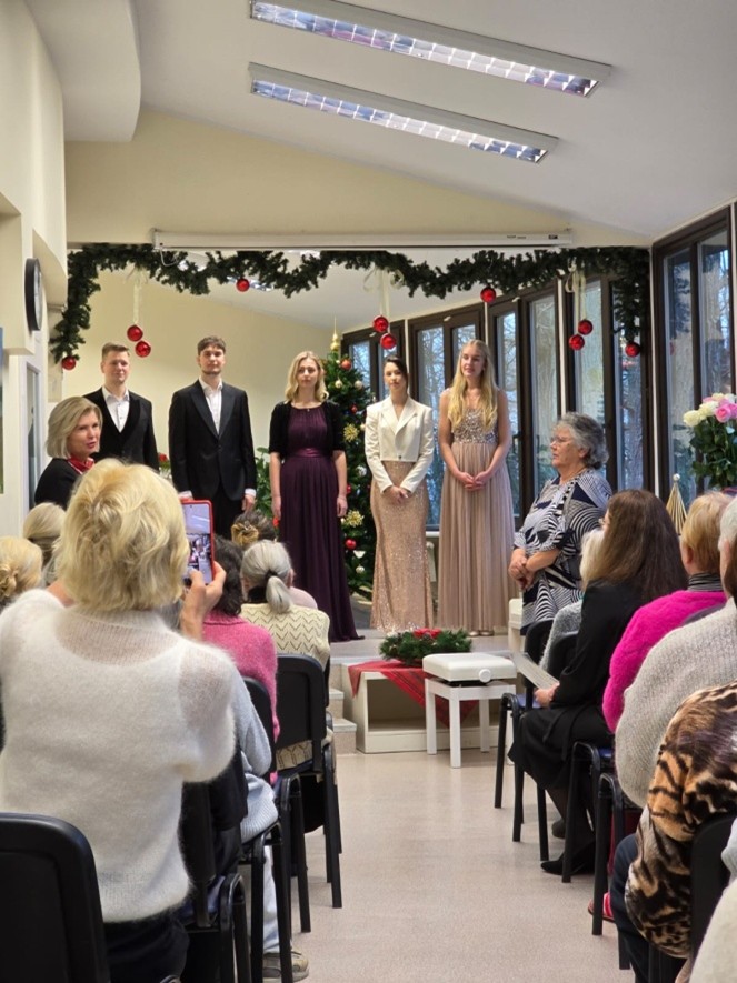 2025 m. gruodžio 17 d. Kauno miesto socialinės globos centre skambėjo sakraliniai adventiniai akordai. VDU Muzikos akademijos profesorės Sabinos Martinaitytės ir profesorės Audronės Eitmanavičiūtės studentai – Mykolas Mikšys, Ugnė Stražnickaitė, Greta Zabielaitė, Ieva Vaivadaitė ir Paulius Katiliavas – kartu su centro lankytojais giedojo Padėkos maldą, sukurdami šventinę atmosferą, kupiną ramybės ir bendrystės.