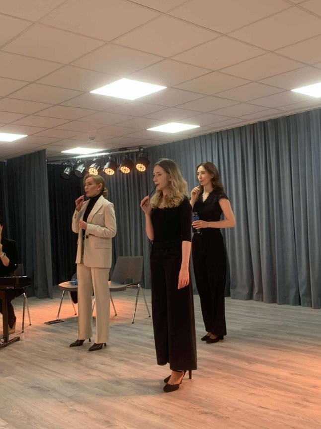 Pamoką vainikavo įspūdingi lektorių Gabrielės Kuzmickaitės ir Gabrielės Bukinės duetai, kuriuos jautriai ir profesionaliai lydėjo pianistė Domantė Matulevičiūtė.
