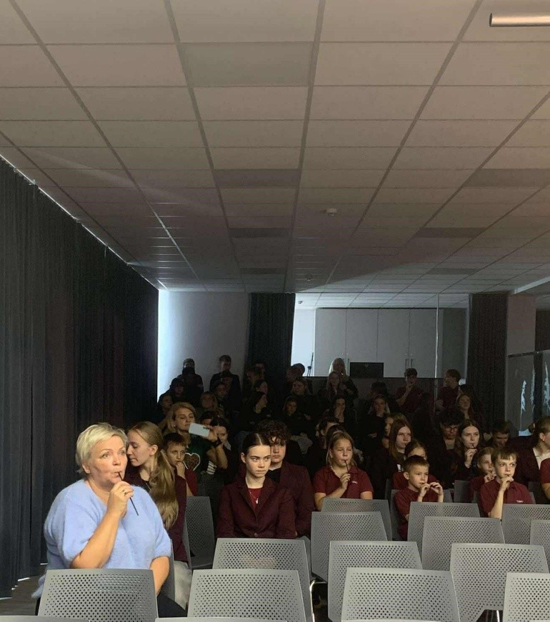 Mokiniai ir mokytojai aktyviai dalyvavo diskusijose, domėjosi profesinėmis galimybėmis ir noriai įsitraukė į praktinius dainavimo pratimus.