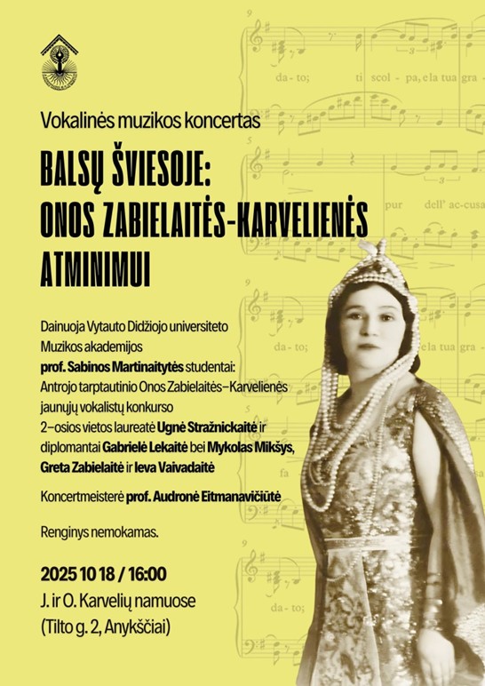 2025 metų spalio 18 dieną Anykščių Onos Zabielaitės-Karvelienės muziejuje vyko iškilmingas koncertas, skirtas pagerbti šviesų Lietuvos vokalo pedagogės ir dainininkės Onos Zabielaitės–Karvelienės atminimą. Jos vardu rengiamas tarptautinis vokalistų konkursas, suburiantis jaunuosius talentus iš įvairių šalių, tapo svarbiu kultūriniu reiškiniu, puoselėjančiu profesionalaus dainavimo tradicijas ir skatinančiu jaunimo kūrybiškumą.
