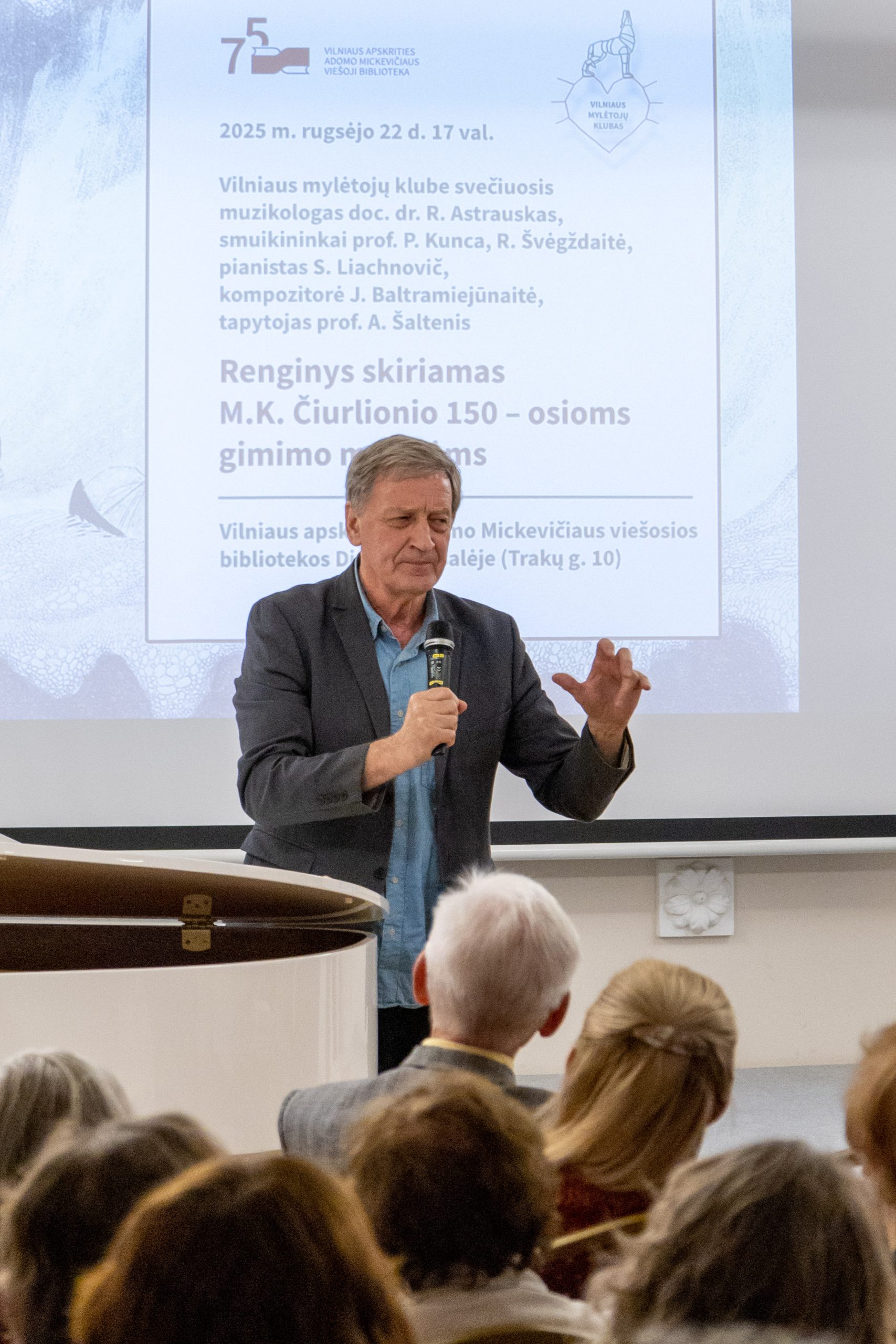 Lietuvos ir Austrijos draugijos ir Vilniečių klubo iškilmingame renginyje Viešosios Adomo Mickevičiaus bibliotekos Didžiojoje salėje VDU MA docentas Rimantas Astrauskas skaitė pranešimą „M. K. Čiurlionio lietuvių liaudies dainų išdailos dermėkaitos aspektu”.